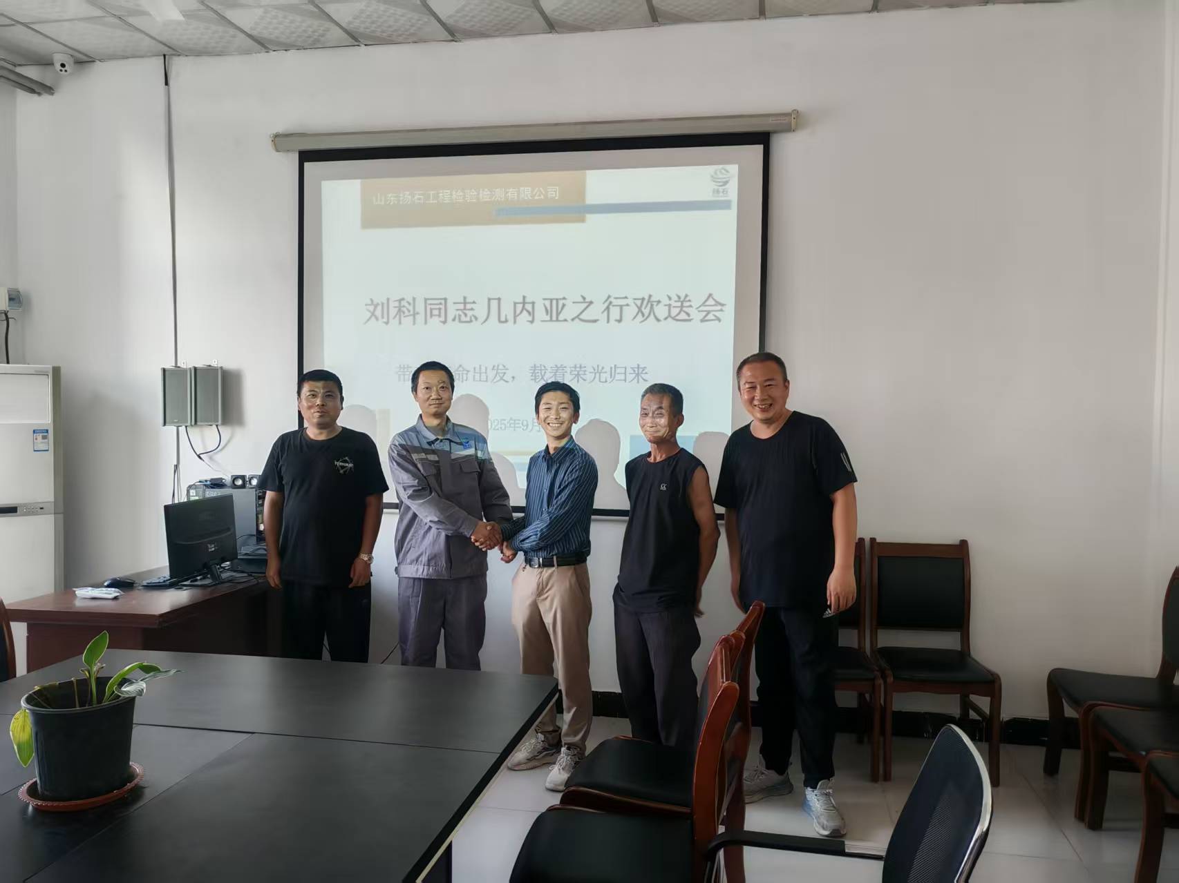 2025年9月25日,山東揚(yáng)石工程檢驗(yàn)檢測(cè)有限公司就劉科前往幾內(nèi)亞共和國(guó)檢測(cè)項(xiàng)目工作之行,舉行歡送會(huì),劉科同志...